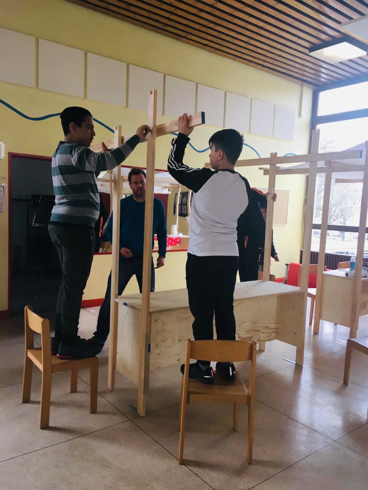 Die Klasse 6b hat als Abschlussprojekt Marktstände für jeden Pavillon der Schule gebaut. Wir hinterlassen so Spuren, denn diese Stände können zu jedem Schulfest oder anderen Gelegenheiten genutzt werden. Sie können als Verkaufsstände, Spielbuden oder viele weitere Ideen eingesetzt werden, also lasst euch nicht zweimal bitten, nutzt sie so oft es sich anbietet, denn sie sind schnell auf- und wieder abgebaut! Viel Freunde damit wünscht allen SchülerInnen, ErzieherInnen, MitarbeiterInnen und LehrerInnen unserer Schule die Klasse 6b.